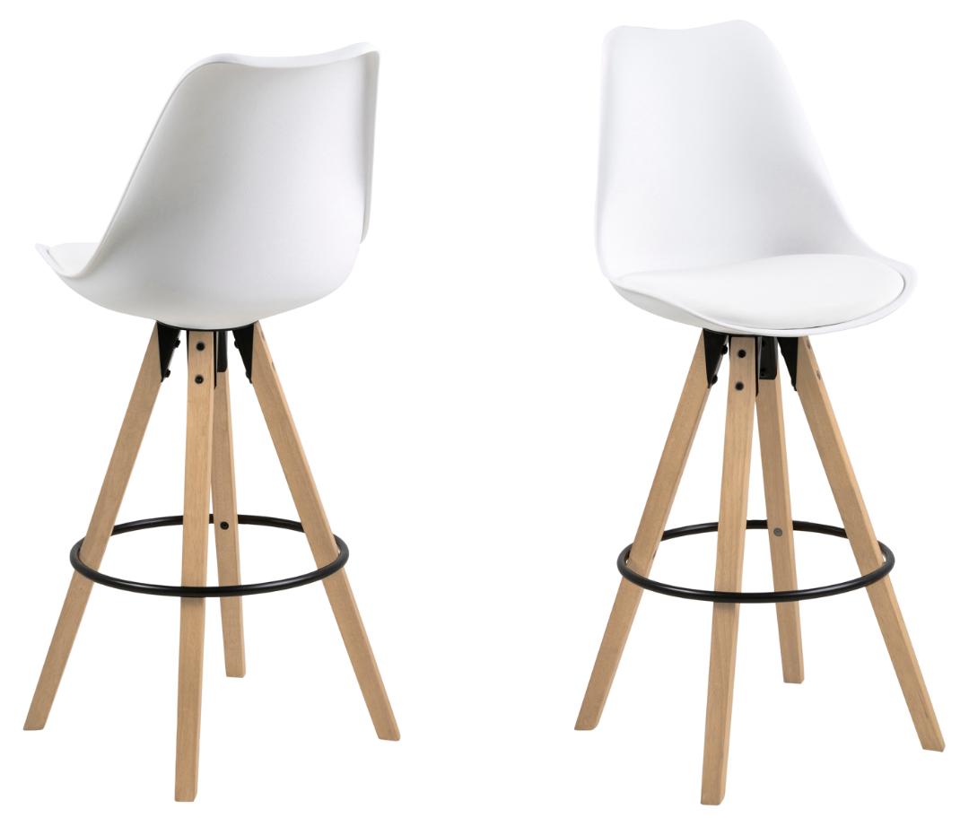 ACT NORDIC Dima barstol, m. ryglæn og fodstøtte – hvid PU/polypropylen og natur gummitræ