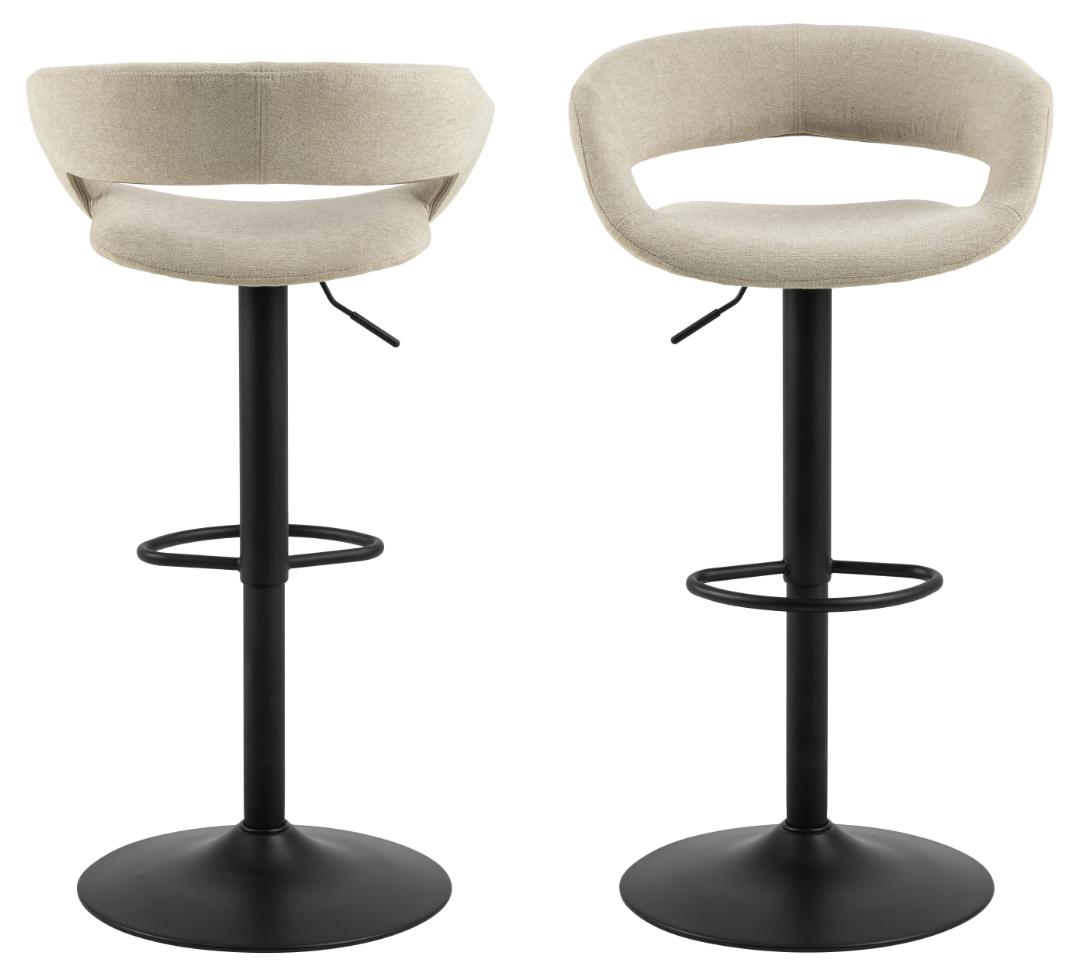 ACT NORDIC Grace barstol, m. ryglæn, armlæn, fodstøtte, drejefunktion – sand stof og sort stål