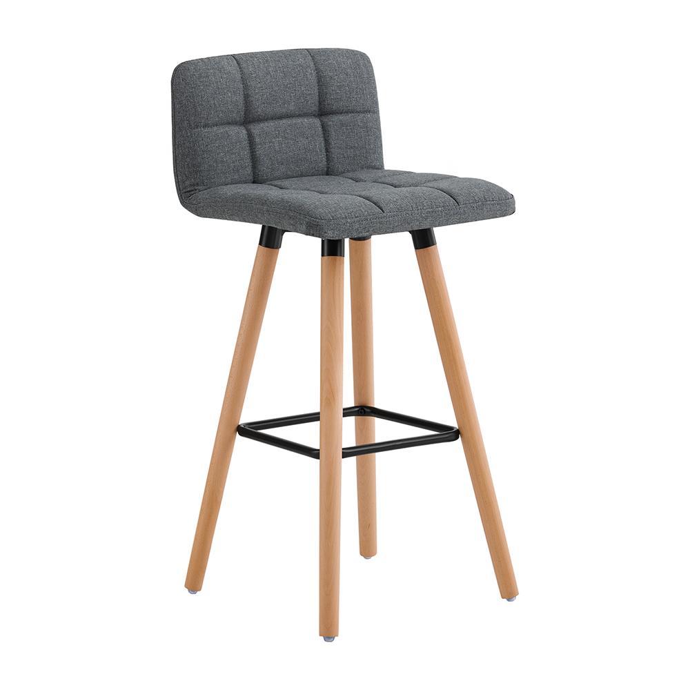 Barstole sæt af 2 stk, fodstøtte og ryglæn, grå 42x42x92 cm – Barstole – Daily-Living – Moderne og elegante barstole på 4 ben – høje stole til barer med ben i massivt træ og stofsæde og ryglæn i grå stof – 2 stk – 42 x 42 x 92 cm