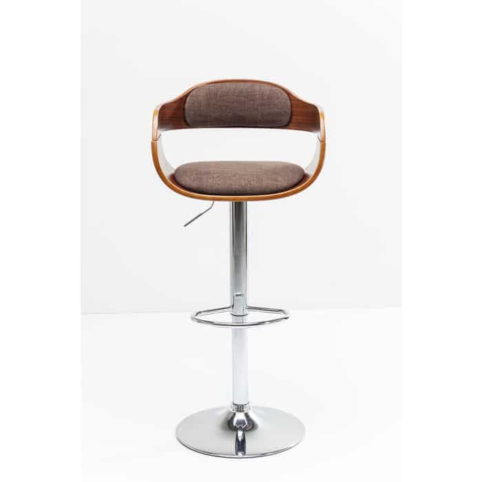 KARE DESIGN Monaco Schoko barstol, m. ryglæn og armlæn – brun polyester/valnøddefinér og krom stål