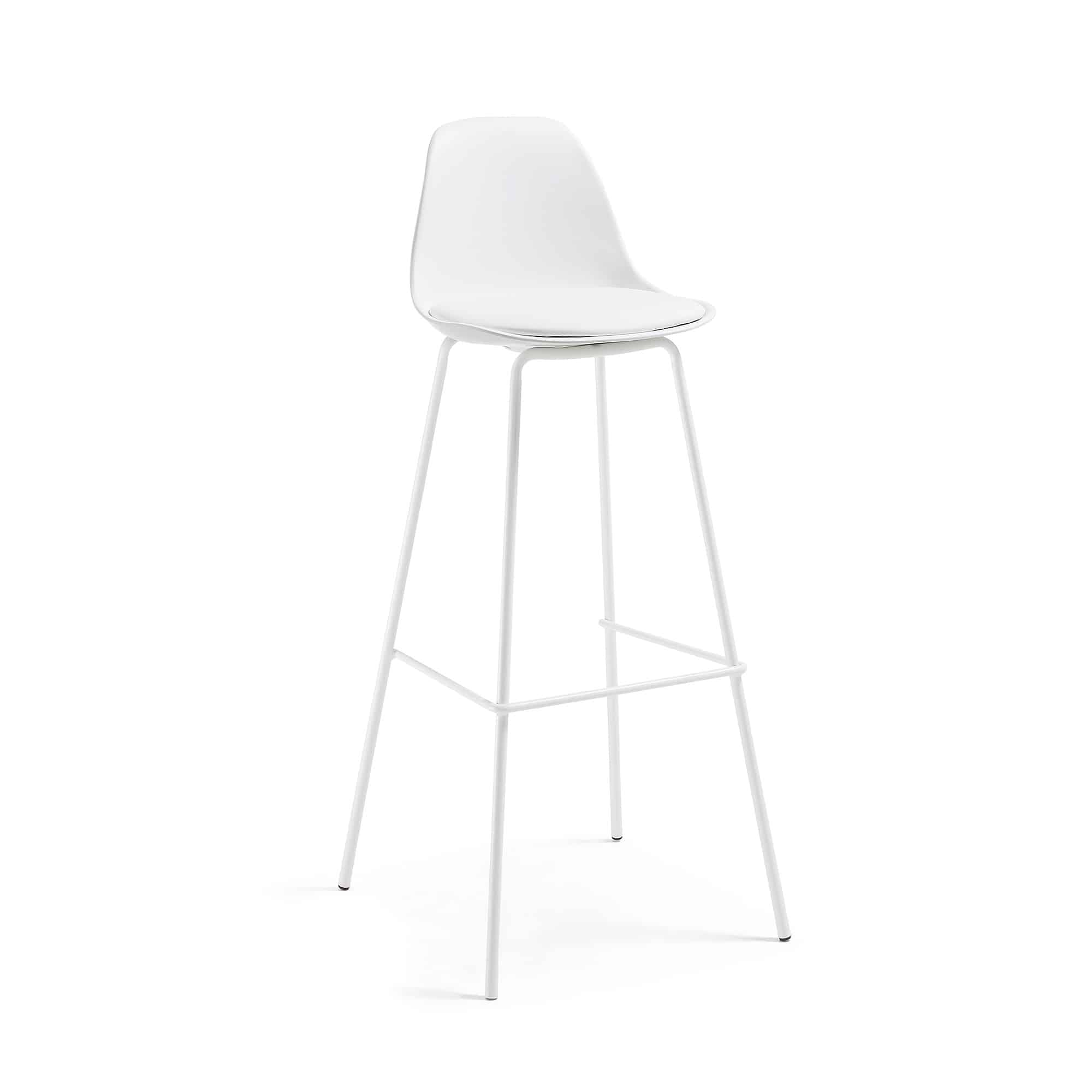 Går du og kigger efter en barstol til din bolig. Så kan det være at denne Lysna barstol fra Kave Home lige er noget for dig. Barstolen med fodstøtte og ryglæn er lavet i hvidt plastik og metal, og har et sæde i hvidt kunstlæder. En charmerende og stilfu